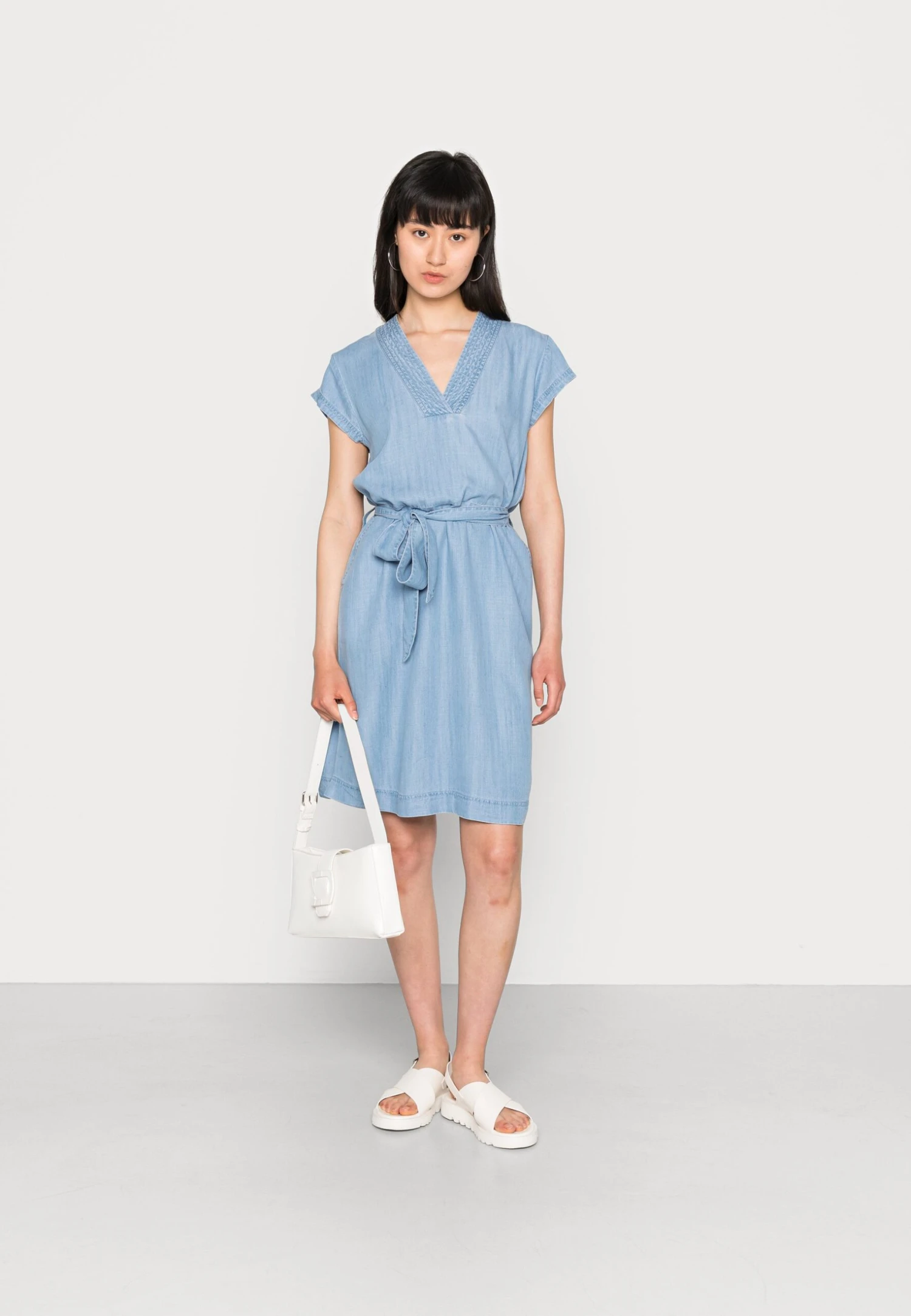 B.young Lana V Neck Dress – Day Dress – Mid Blue Denim