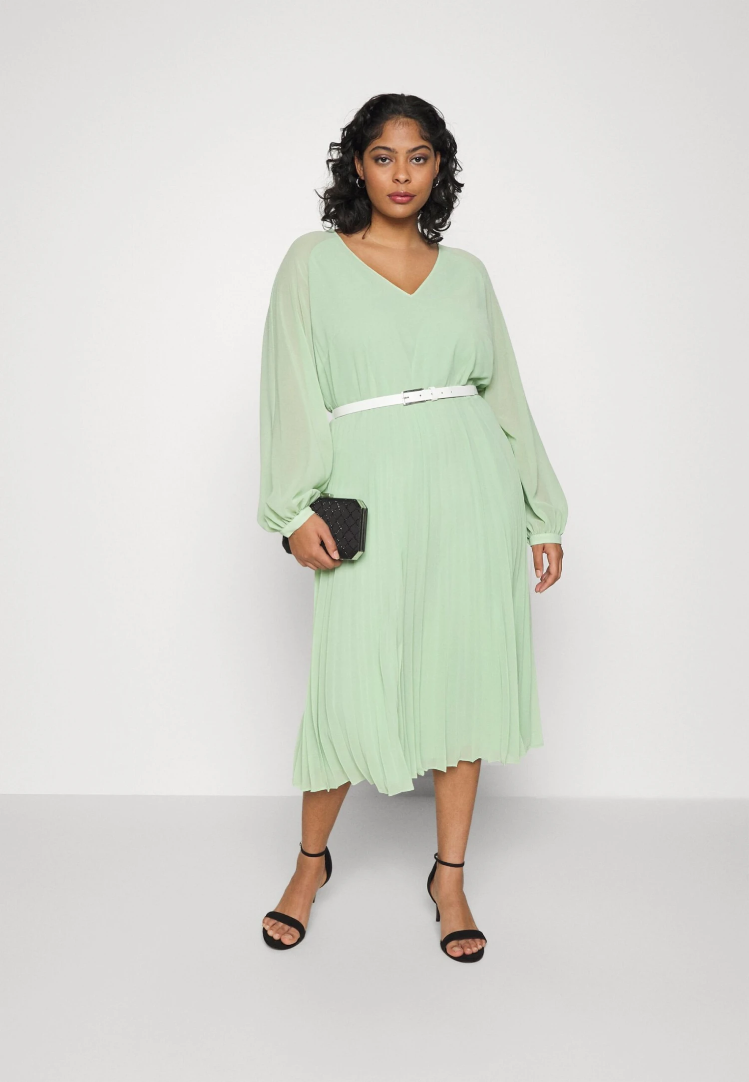 | Details | Belt included, slip, bust darts |